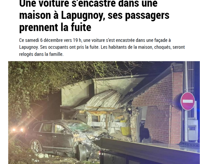 GORAFI : Le samedi 6 Décembre une voiture a percuté un mur à Lqpugnoy, le conducteur avait pris la fuite .